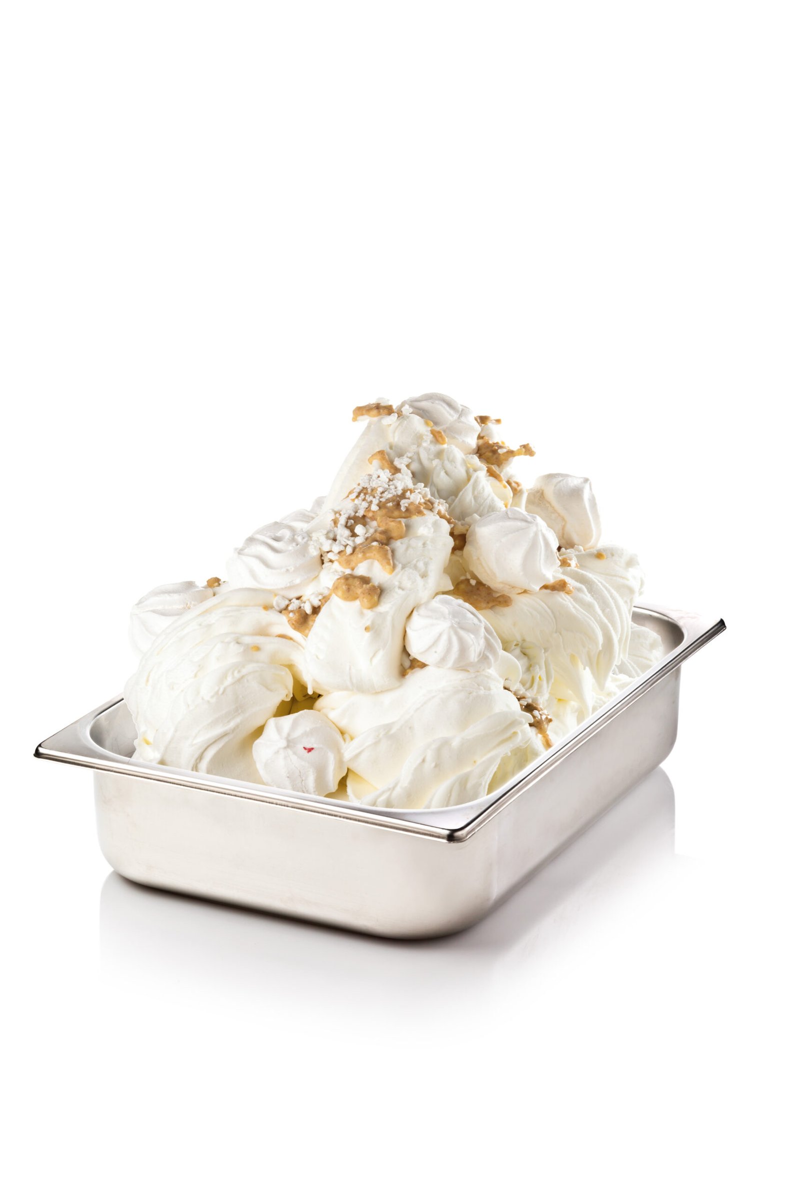 Pasta que imita el sabor del merengue a la perfección. Veteado con trocitos de merengue que se disuelven al contacto con el paladar.